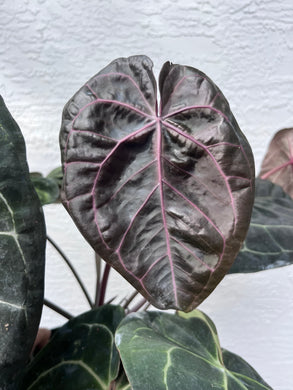 Anthurium Red Crystallinum Tezula (Purple emergent) two plants in pot